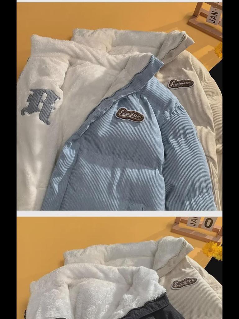 Мужская куртка Haze Blue из плотного вельвета и хлопка — гонконгский стиль, зима 2023 года