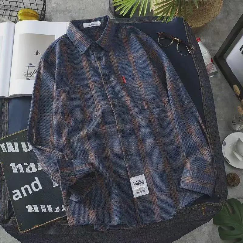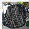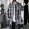 Рубашка унисекс с длинным рукавом в гонконгскую клетку: Модный, свободный крой, ретро-корейский стиль на все времена года