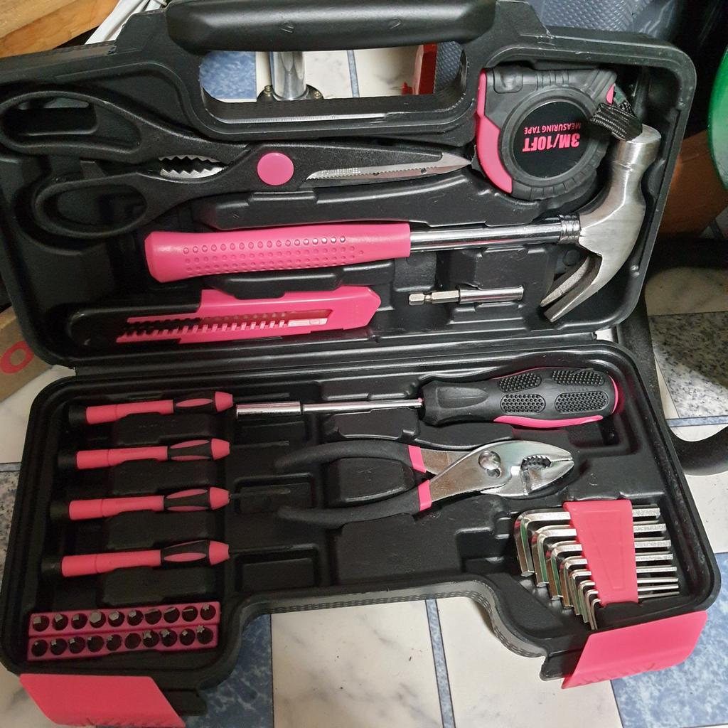Набор инструментов розового цвета из 39 предметов, включая отвертку, канцелярский нож, ножницы, подходит для ремонта дома, в гараже, в саду