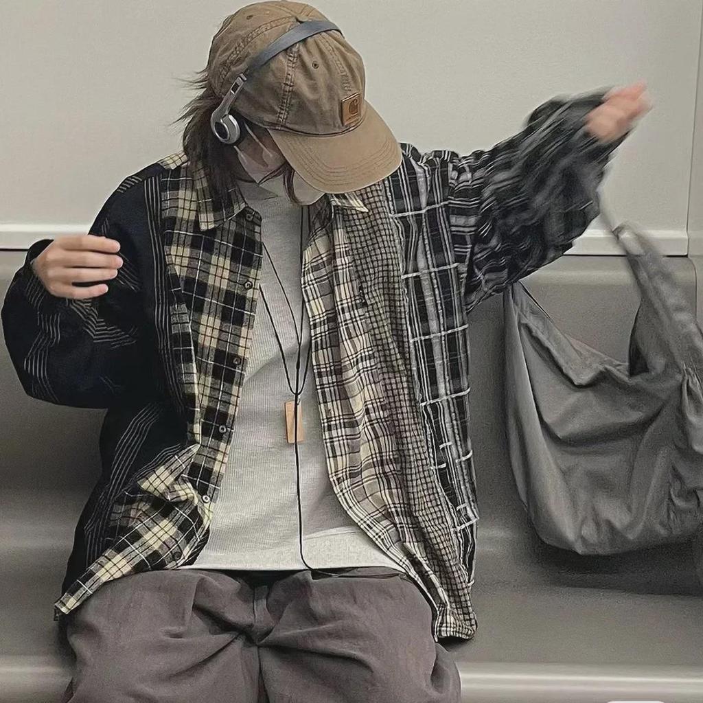 Мужская клетчатая рубашка в стиле ретро с длинным рукавом — американский уличный стиль, вдохновленный японской культурой, идеально подходит для весны и осени. — купить товар онлайн с бесплатной доставкой по всему миру!