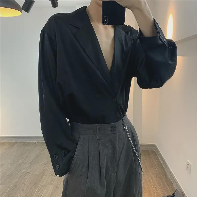 Мужская модная весенняя рубашка в корейском стиле с длинным рукавом и воротником - белая/черная — купить товар онлайн с бесплатной доставкой по всему миру!