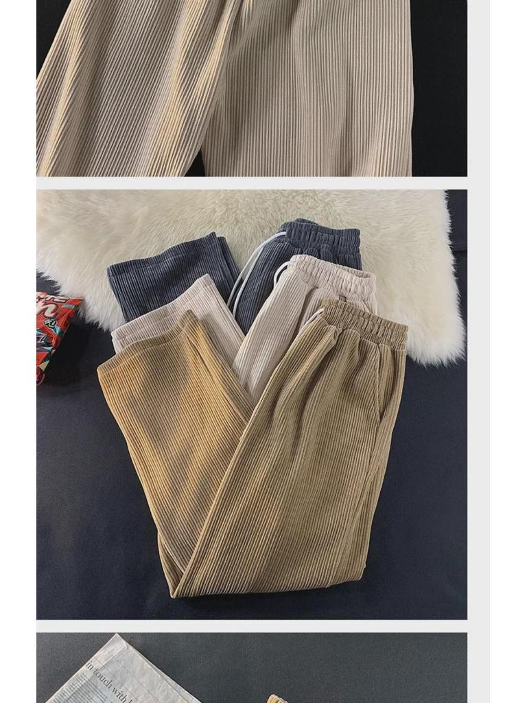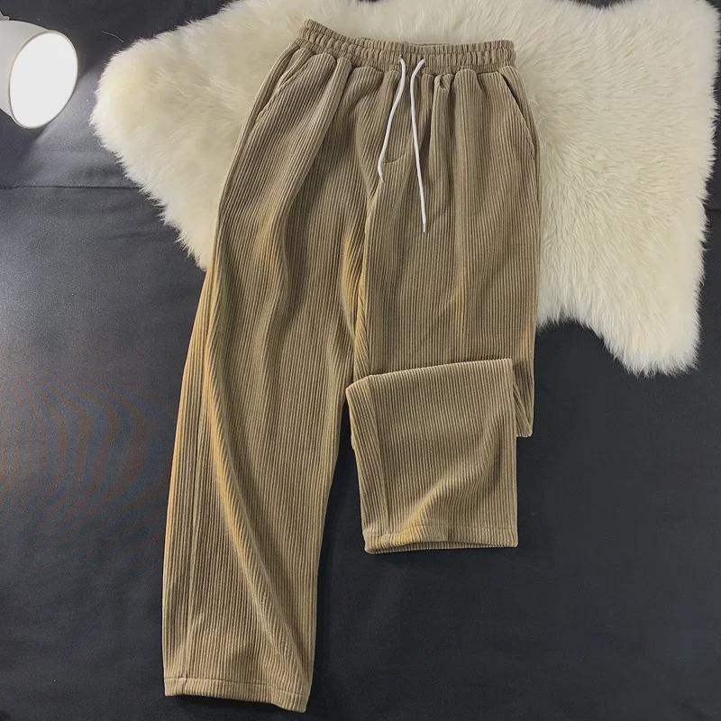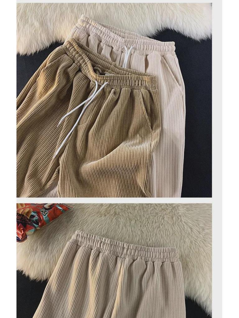 Мужские широкие брюки вельвета в стиле ретро — гонконгский стиль, свободный крой, длина девять точек, повседневная спортивная одежда на весну и осень.