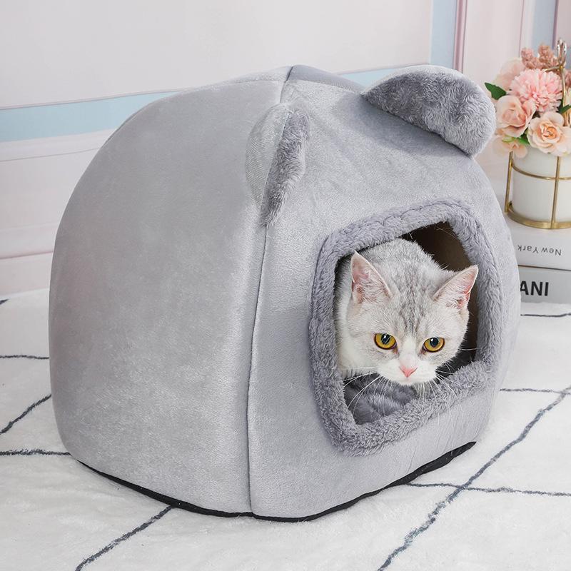 Новое гнездо для кошек в форме головы медведя, теплое и удобное, плюс бархатная закрытая лежанка для кошек, гнездо для маленьких и средних собак, товары для животных