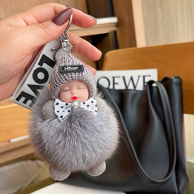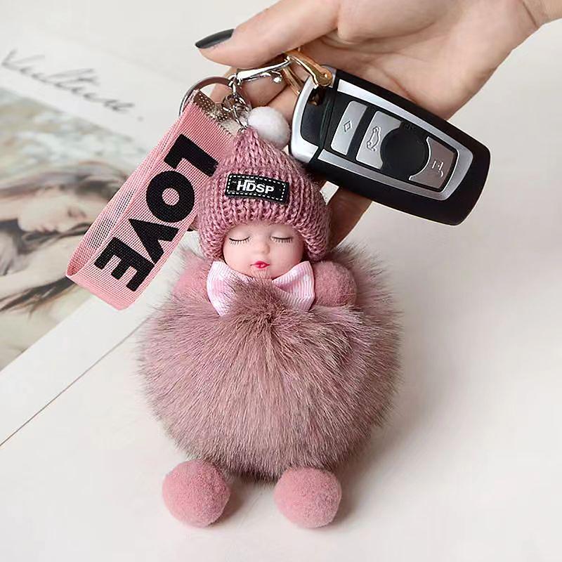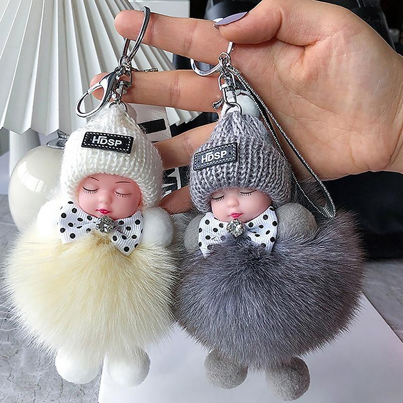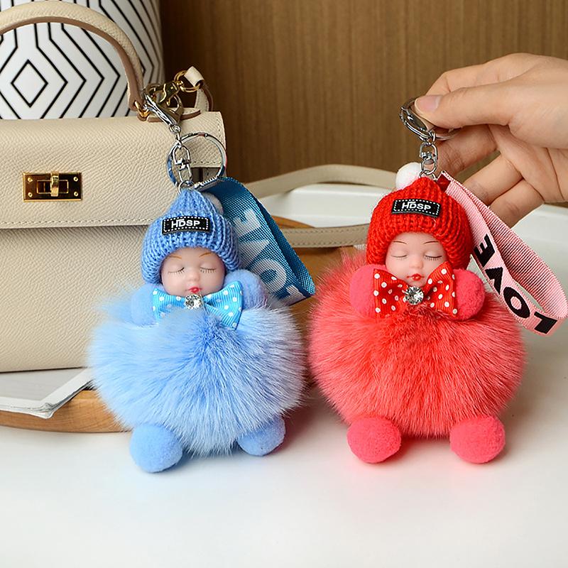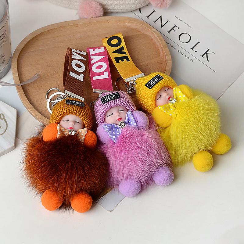 Помпон Спящая Кукла Брелок Милая Пушистая Плюшевая Кукла Брелки Кукольная Сумка Подарок Машины