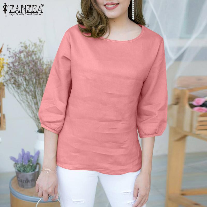 ZANZEA Женская повседневная блузка свободного кроя с круглым вырезом и рукавом 3/4 — купить товар онлайн с бесплатной доставкой по всему миру!