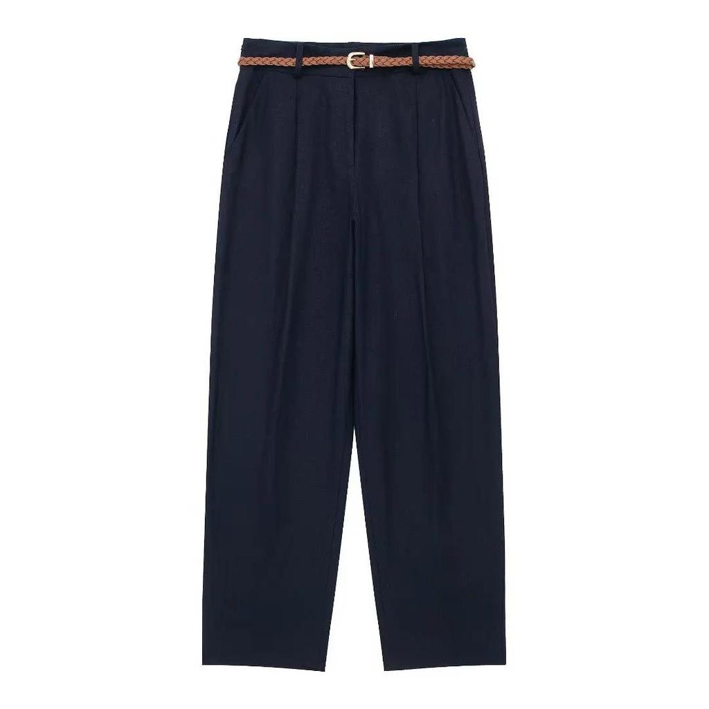 Летние 2024 г. Женские прямые брюки в европейском и американском стиле из льняной смеси с высокой талией в стиле ретро