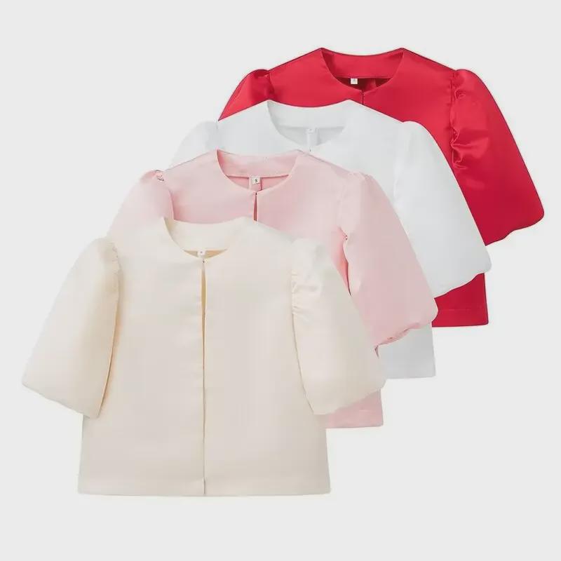 «Женский атласный топ свободного кроя с рукавами-фонариками из Европы и Америки 2024 года»