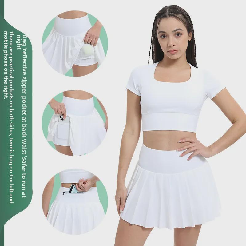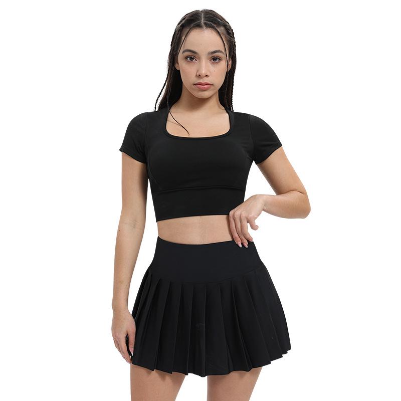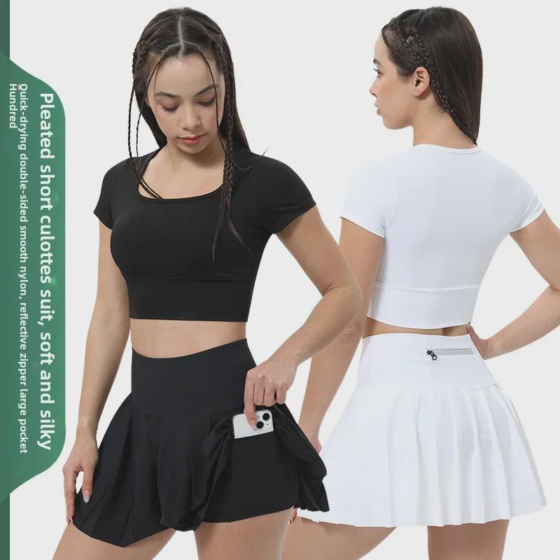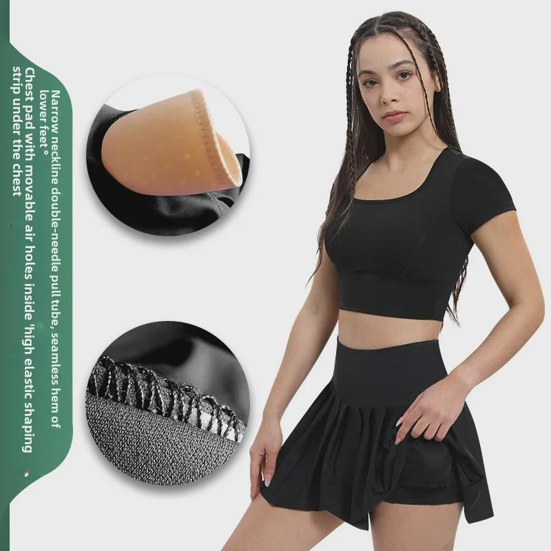 Женские быстросохнущие спортивные топы и теннисные юбки: Ударопрочная одежда для йоги с подкладкой на груди и открытым пупком