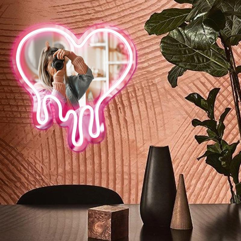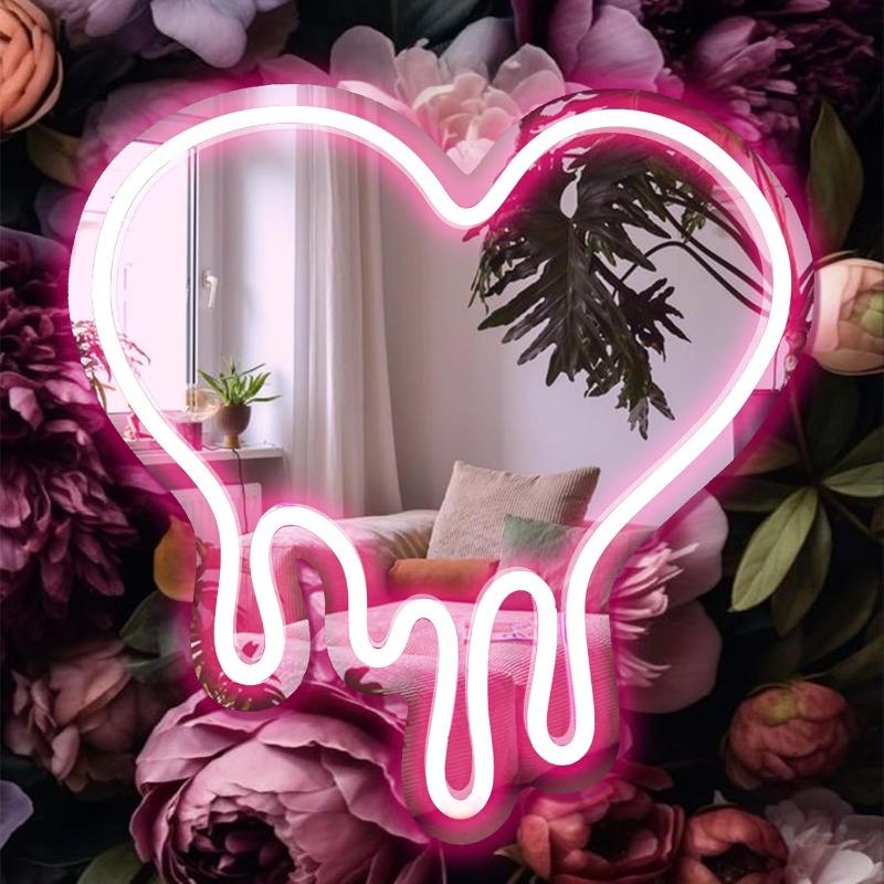 Настенный декор в виде неоновой вывески в форме сердца, светодиодная розовая лампа с питанием от USB, декоративное настенное зеркало для спальни, комнаты для девочек, вечеринки, студии, декора магазина, подарков на день рождения