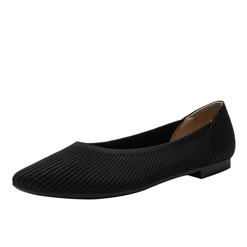 Туфли-лодочки Straight Grain с заостренным носком и плоским дном, женские летние трикотажные туфли Flying Thread, повседневные однотонные туфли-лодочки большого размера
