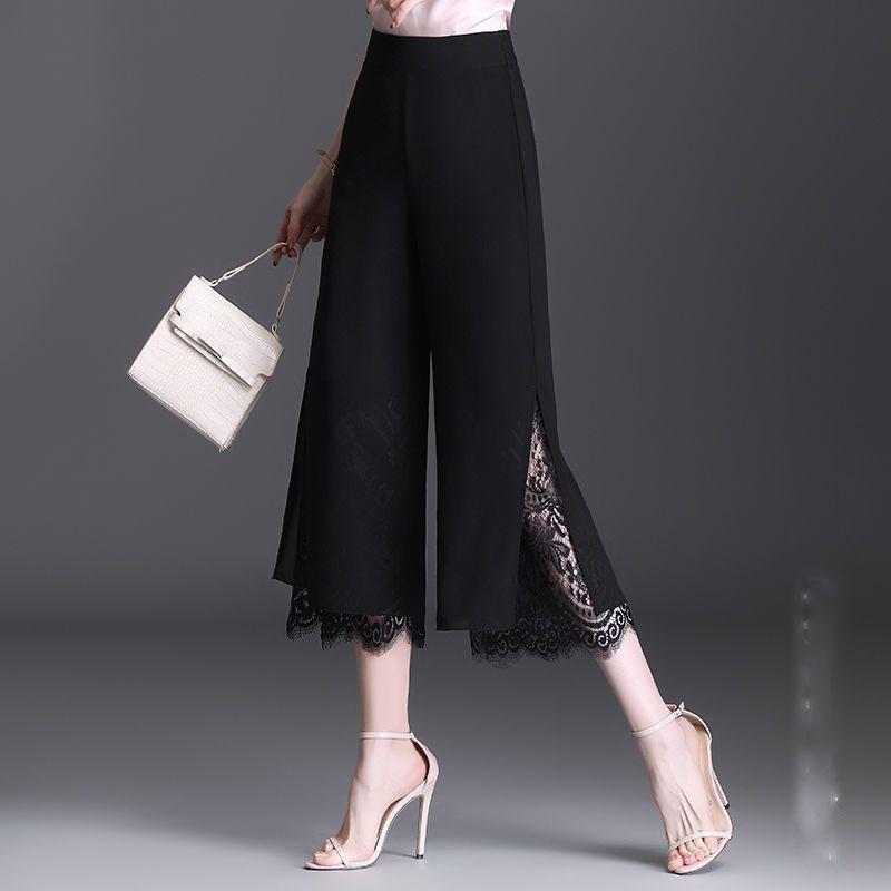 Летние женские сексуальные кружевные широкие брюки с разрезом по бокам, свободные брюки длиной до щиколотки с высокой талией, классные и дышащие женские брюки