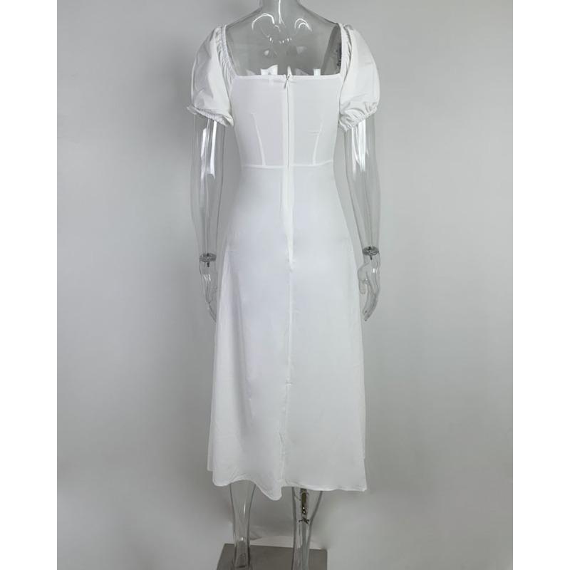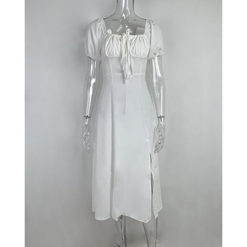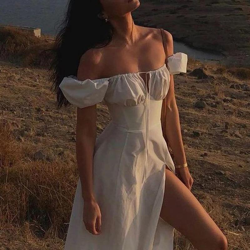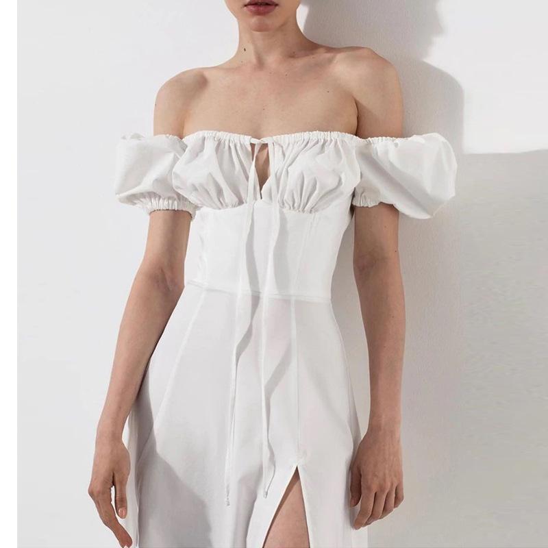 Весенние платья Женская темпераментная длинная юбка с пузырьковыми рукавами и завязками с разрезом