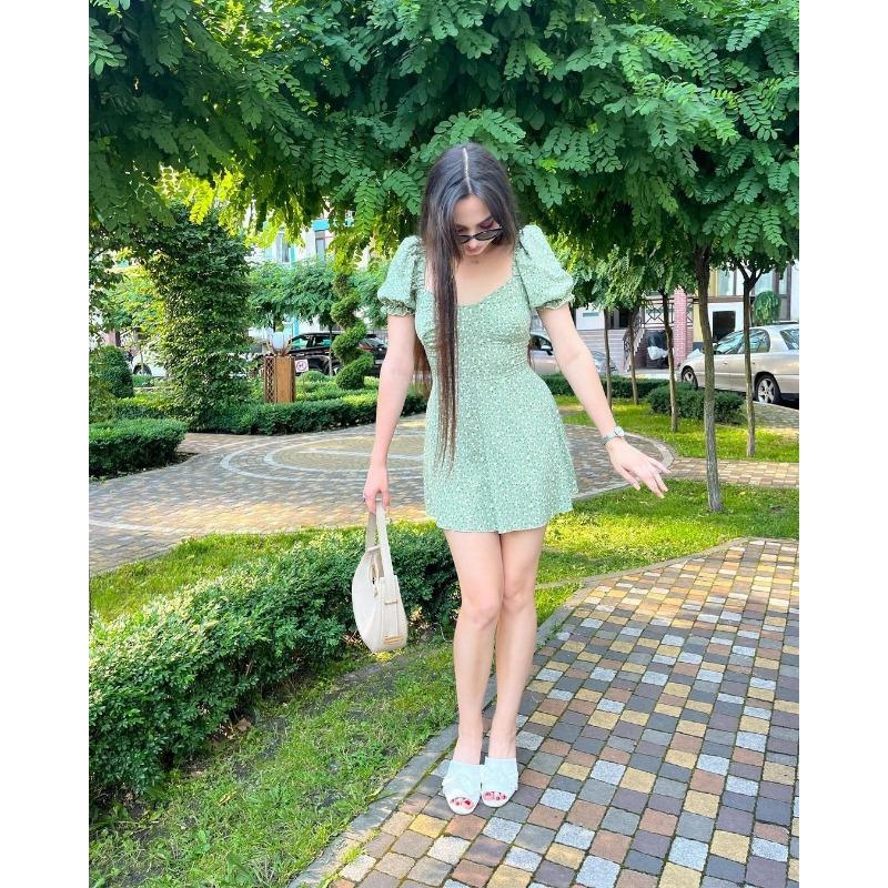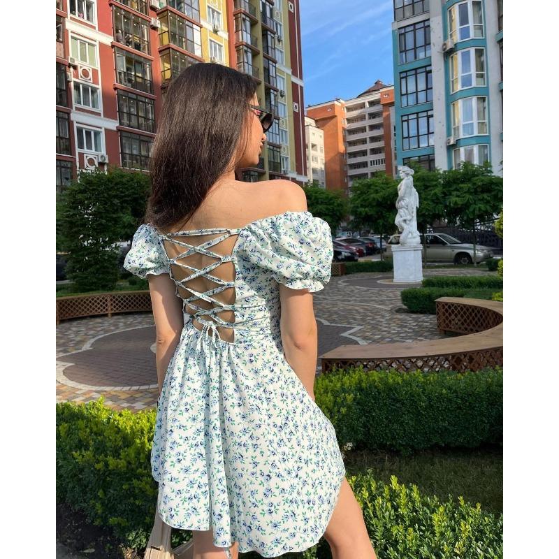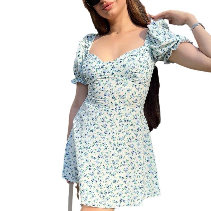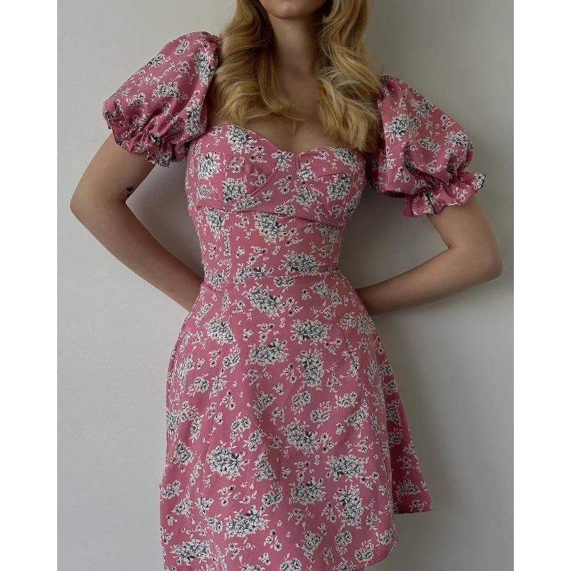 Женские летние платья в стиле ретро с цветочным принтом и высокой талией, с объемными рукавами
