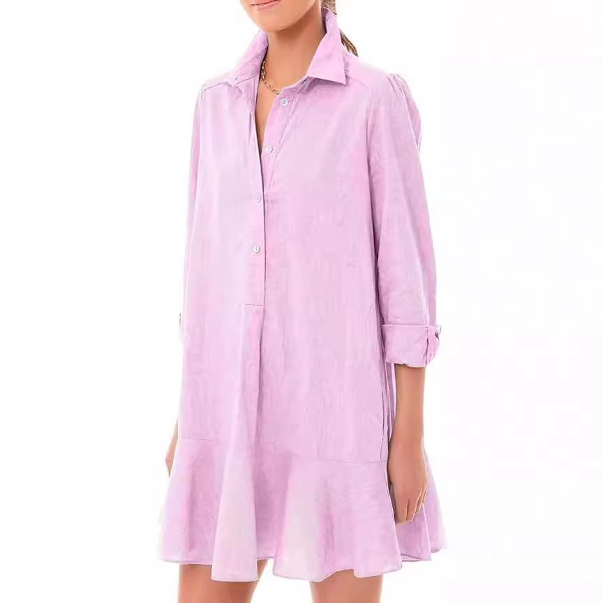 Весна-лето Женские платья с длинными рукавами и оборками по подолу