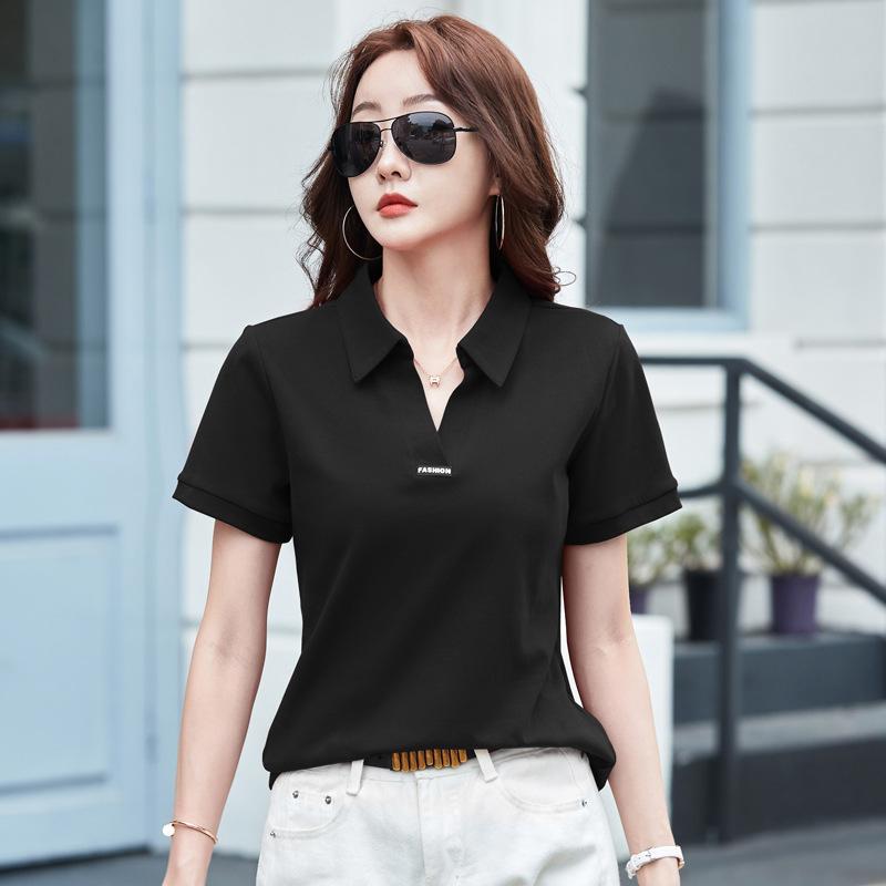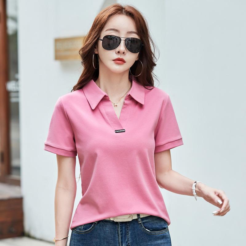 Летняя женская рубашка поло с коротким рукавом и лацканами ярких цветов