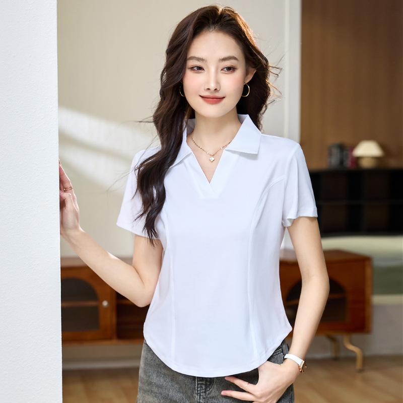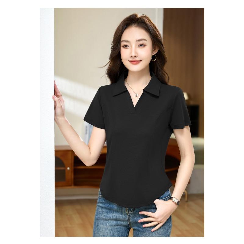 Летняя женская облегающая и тонкая повседневная футболка с лацканами и короткими рукавами