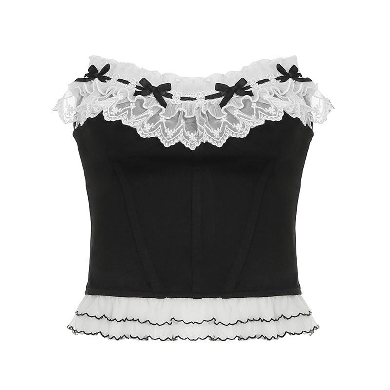 Женский стиль суда кружево кружево через веревку бант столкновение цветов бюстье чистое желание девушки корсет тонкий сотня сексуальных топов