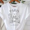 Винтажная элегантная футболка с коротким рукавом и круглым вырезом с принтом Paris Tower Top Высококачественная удобная минималистичная женская одежда