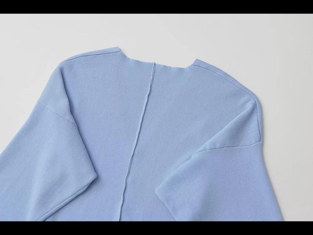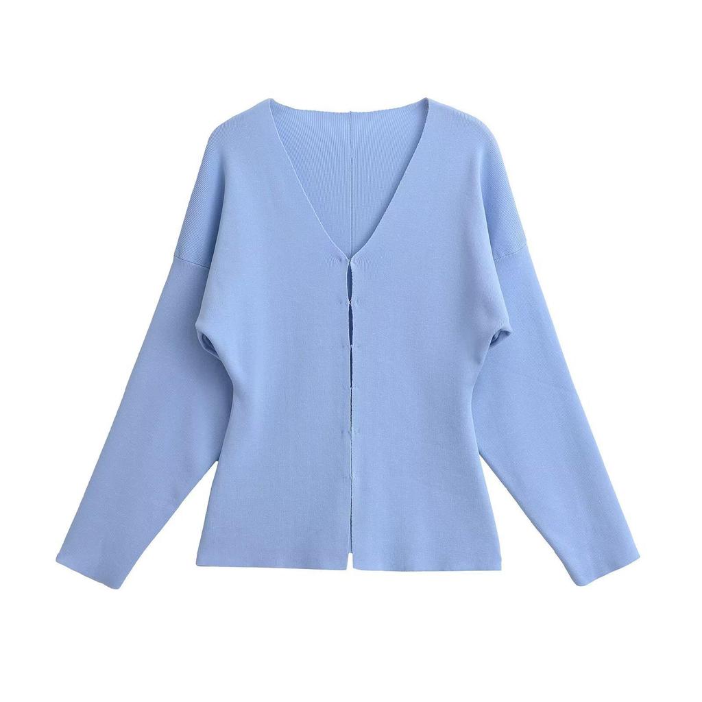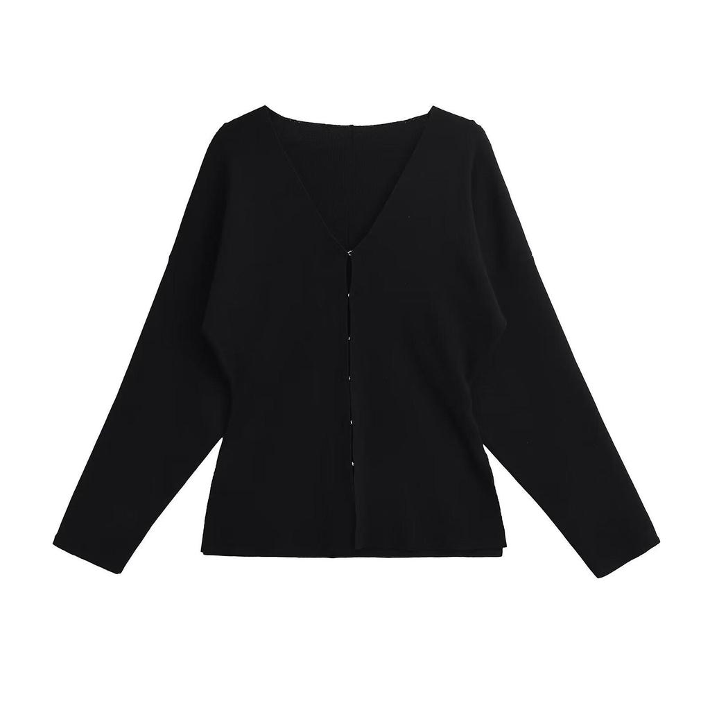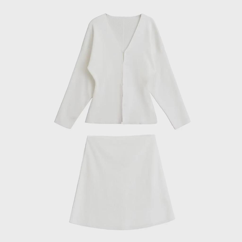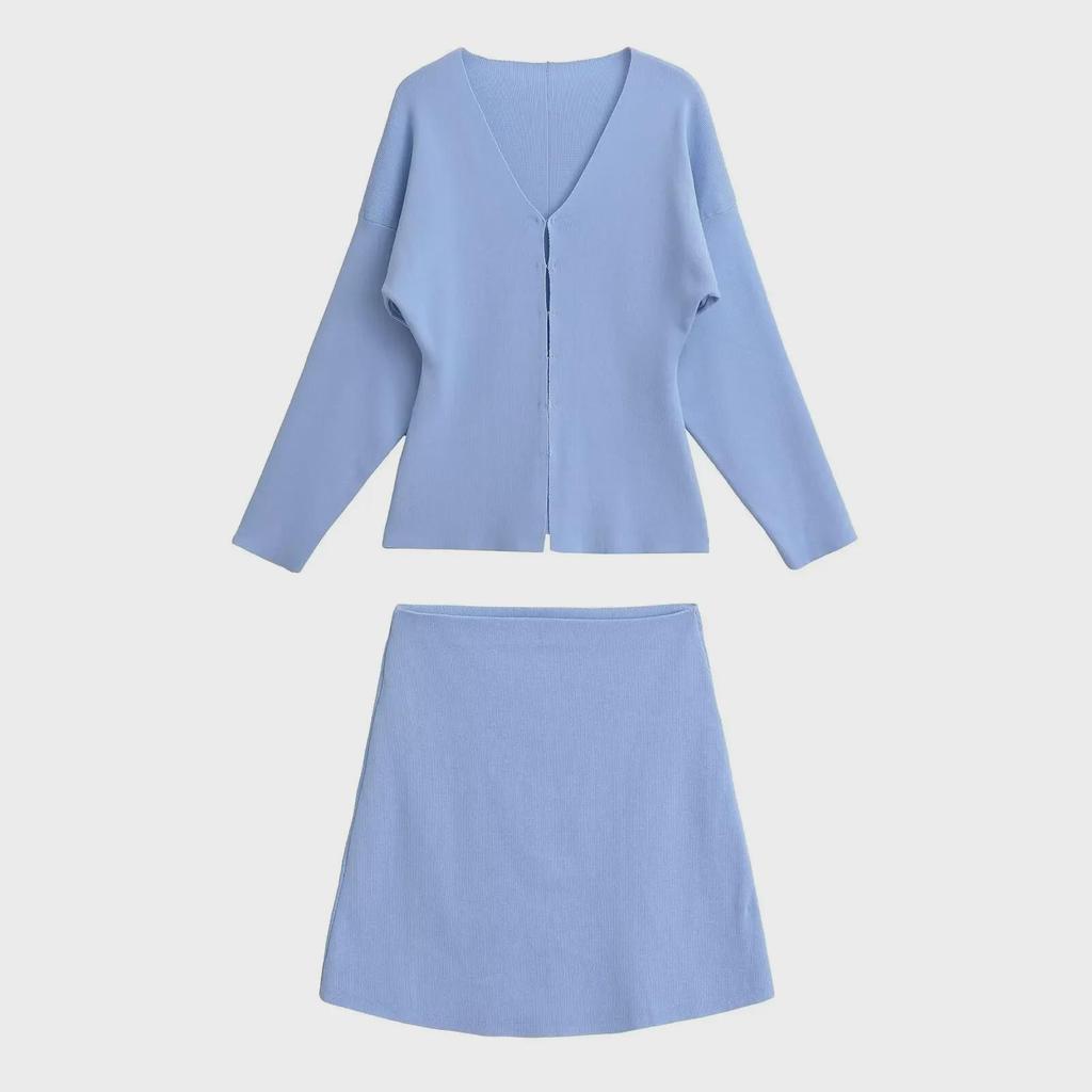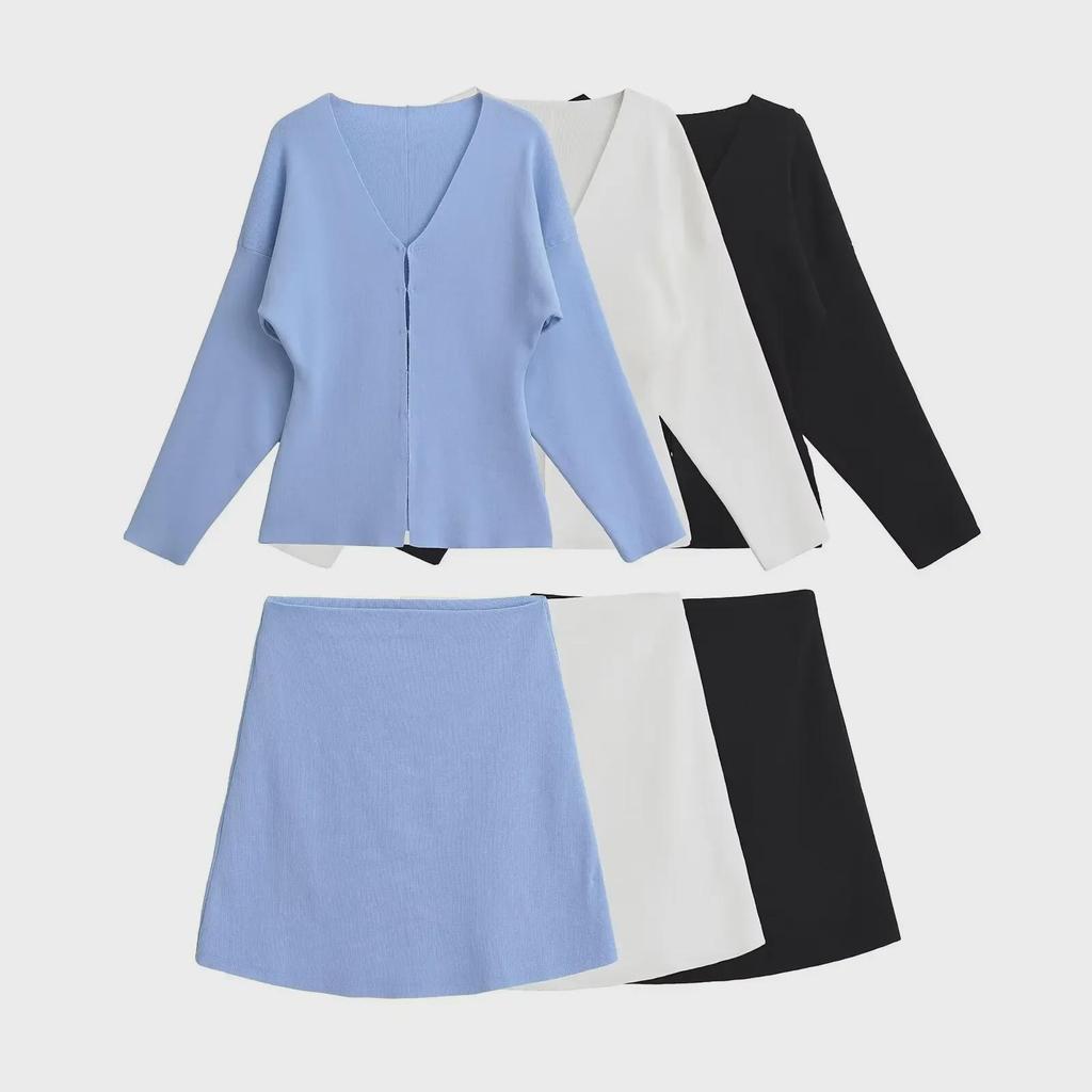 Комплект из женского облегающего трикотажного кардигана с V-образным вырезом и однотонной юбки, осень 2024 г.