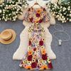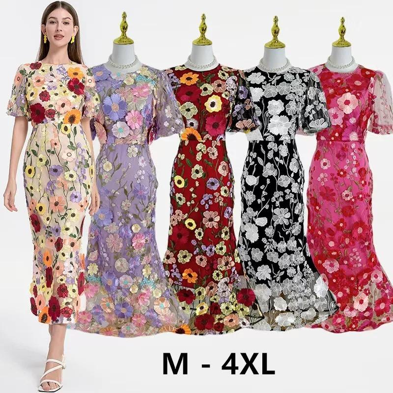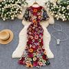 Элегантное цветочное вышитое О-образное платье в стиле винтаж с коротким рукавом и фонариком, шикарное облегающее платье-русалка, французская вечерняя женская одежда для улицы