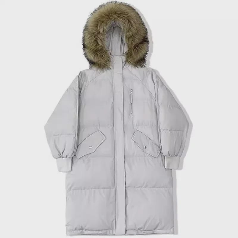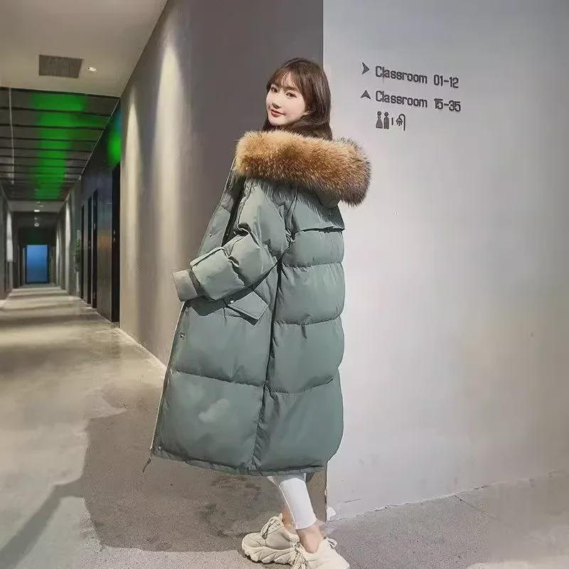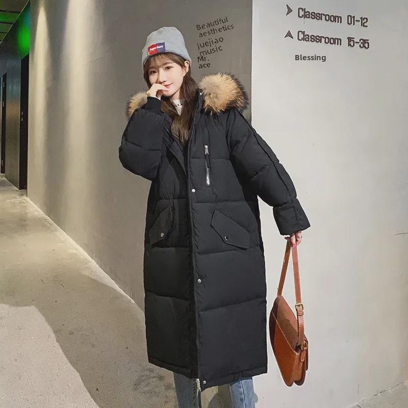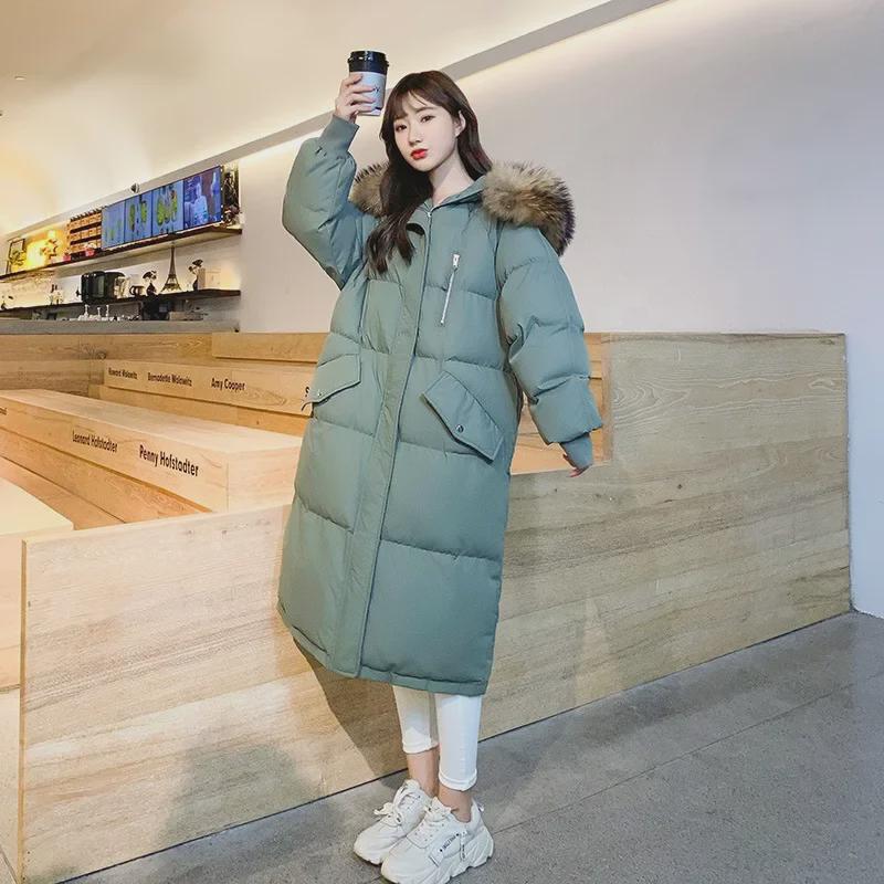 Женская зимняя длинная пуховая куртка в корейском стиле из хлопка: Свободный крой, толстое, модное пальто