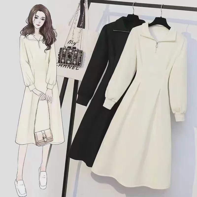 Женское платье-свитер на молнии в корейском стиле больших размеров - плотный бархат, однотонный, повседневная длинная юбка на осень/зиму — купить товар онлайн с бесплатной доставкой по всему миру!