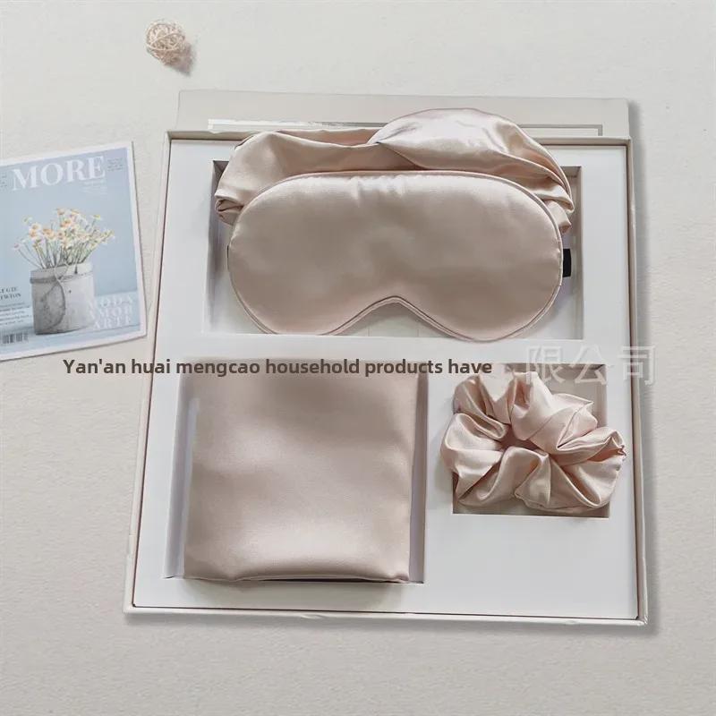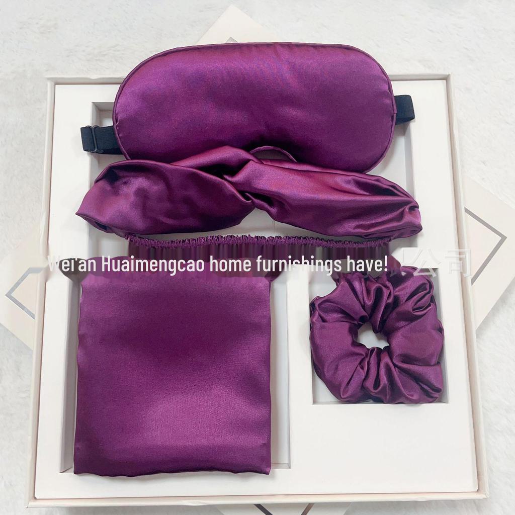 Комплект для сна из шелка: Регулируемая маска для глаз, наволочка, повязка для волос, повязка на голову для путешествий и блокировки света