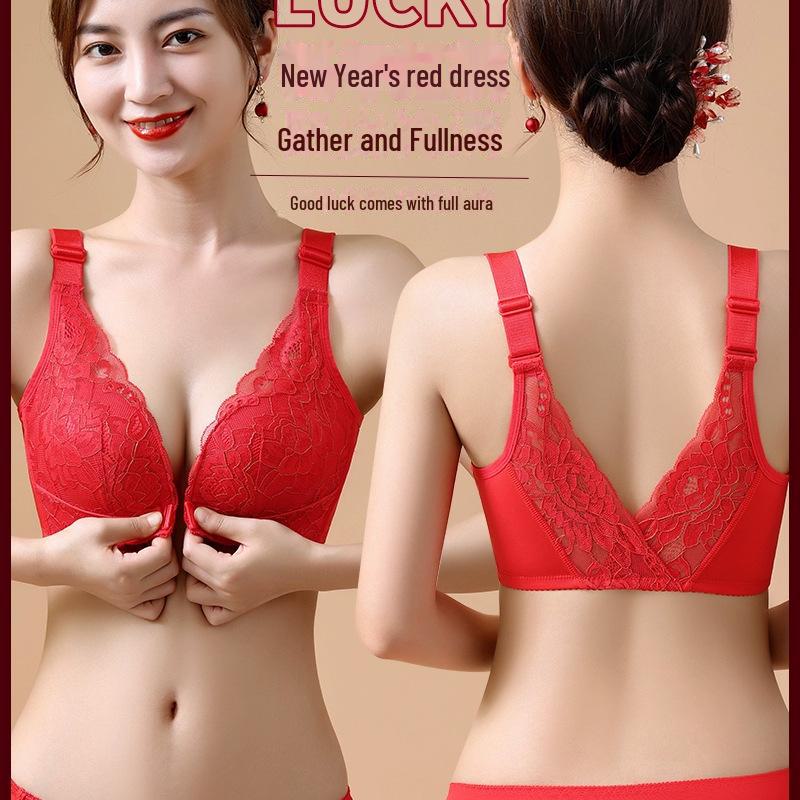 Комплект женского нижнего белья ярко-красного цвета по знаку зодиака: Застежка спереди, присборенные чашечки, боковая поддержка, без стальных колец, красивый дизайн спинки. — купить товар онлайн с бесплатной доставкой по всему миру!