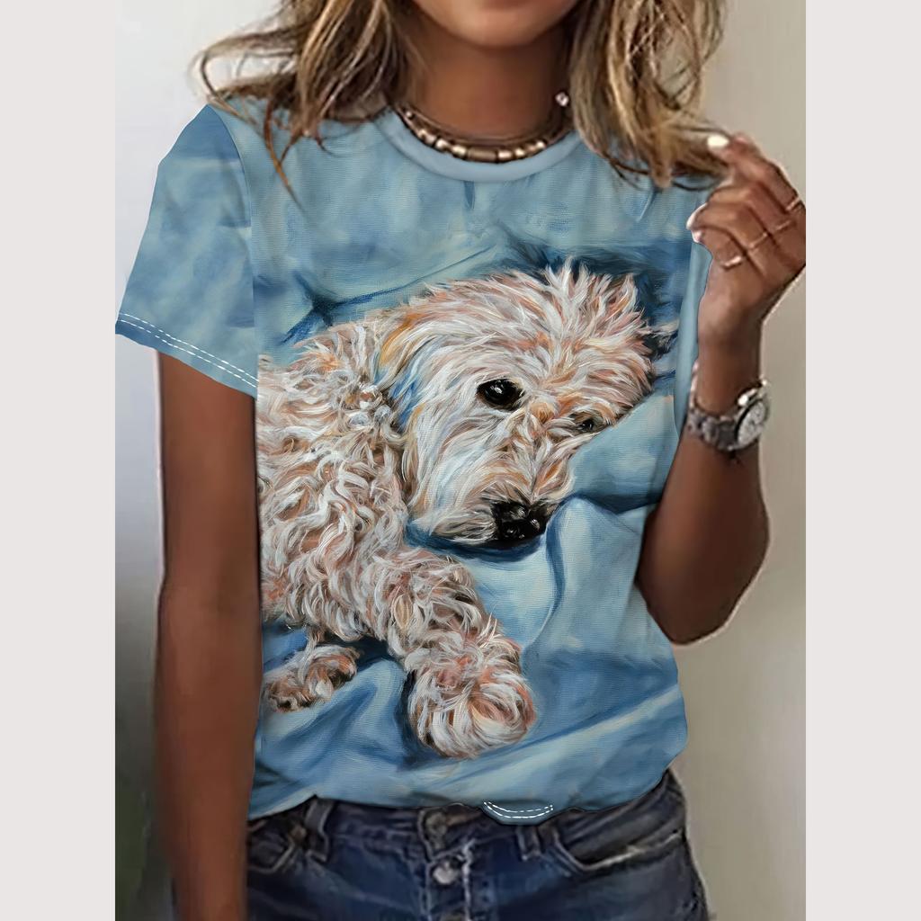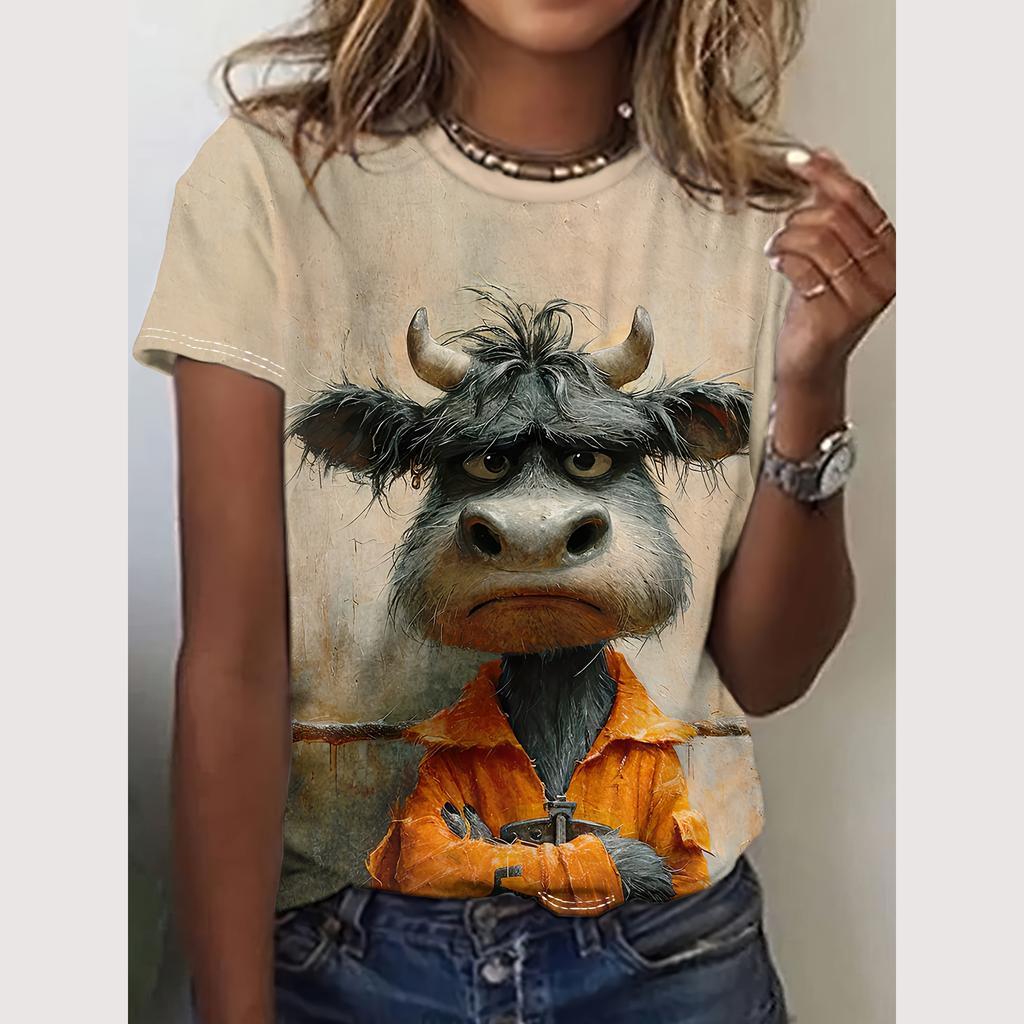 Футболка с рисунком для женщин с принтом животных, топ с круглым вырезом, модные женские футболки, пуловеры, женская свободная одежда