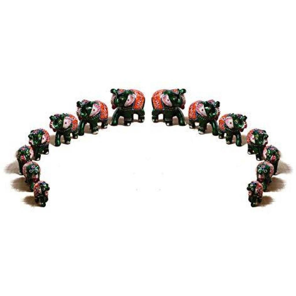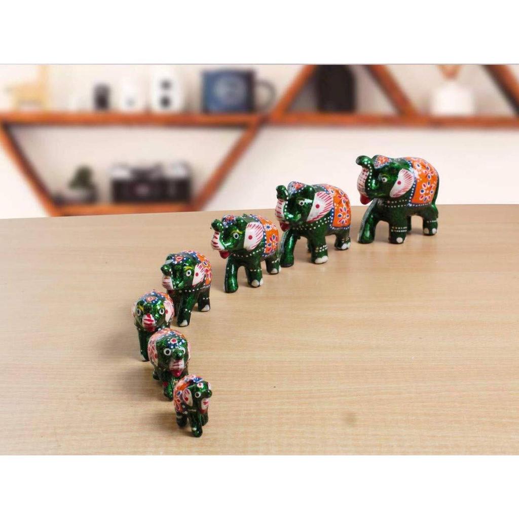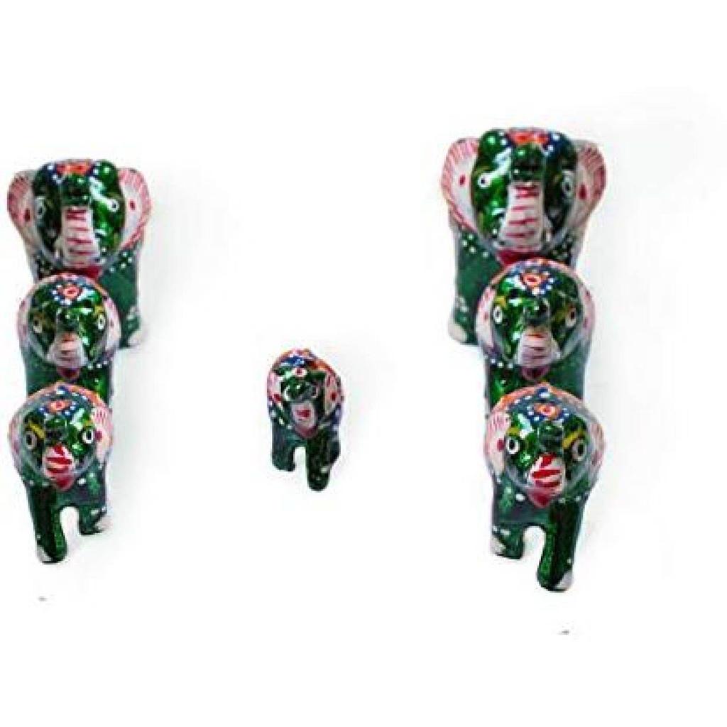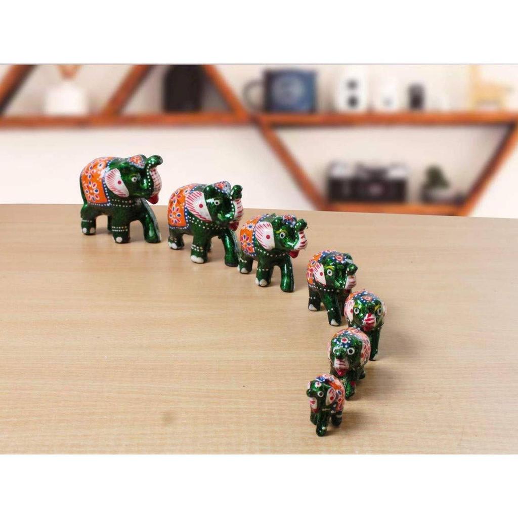 Последовательность слонов 7 предметов Канха Джи Пуджа Комната и подарочный предмет для дома Декоративный экспонат - 10 см (Папье-маше, зеленое)