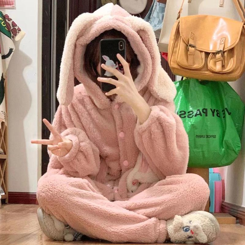 Милая пижама из флиса с рисунком кролика из мультфильма для женщин - мягкая фланелевая домашняя одежда, идеально подходит для осени и зимы — купить товар онлайн с бесплатной доставкой по всему миру!