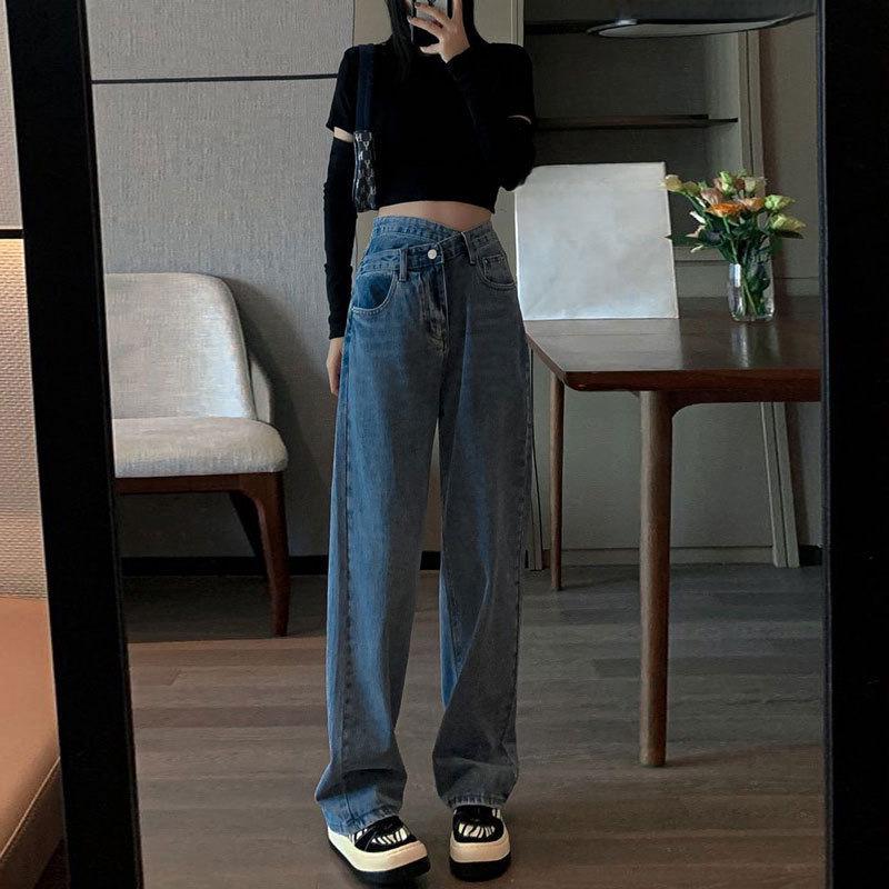 Женские прямые джинсы с высокой талией 2023 года: Нестандартные пуговицы, облегающие, свободный крой, стиль «швабра» на весну — купить товар онлайн с бесплатной доставкой по всему миру!
