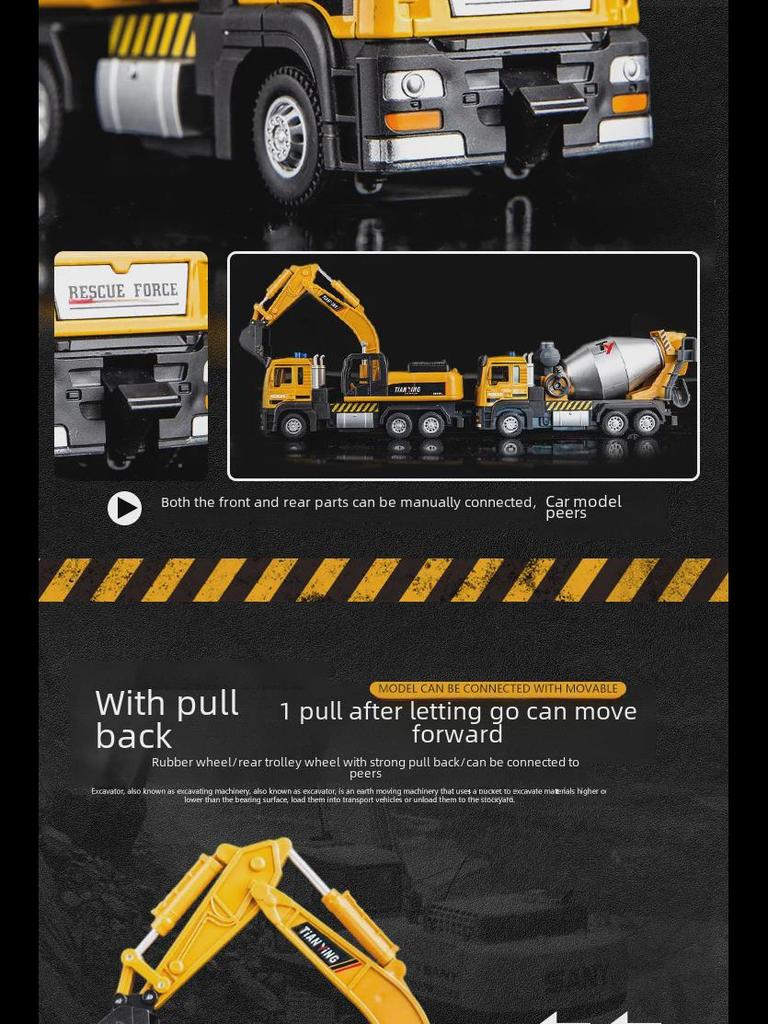 Детская сплавная инженерная машина со светом и звуком Миксер Экскаватор