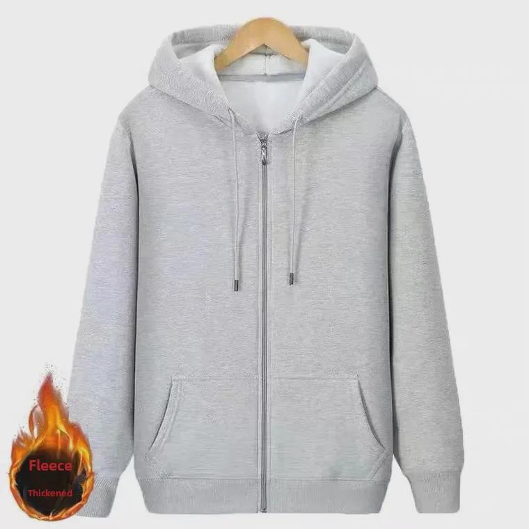 Мужская зимняя толстовка-кардиган из утолщенного бархата и хлопка 2024 года с капюшоном и застежкой-молнией