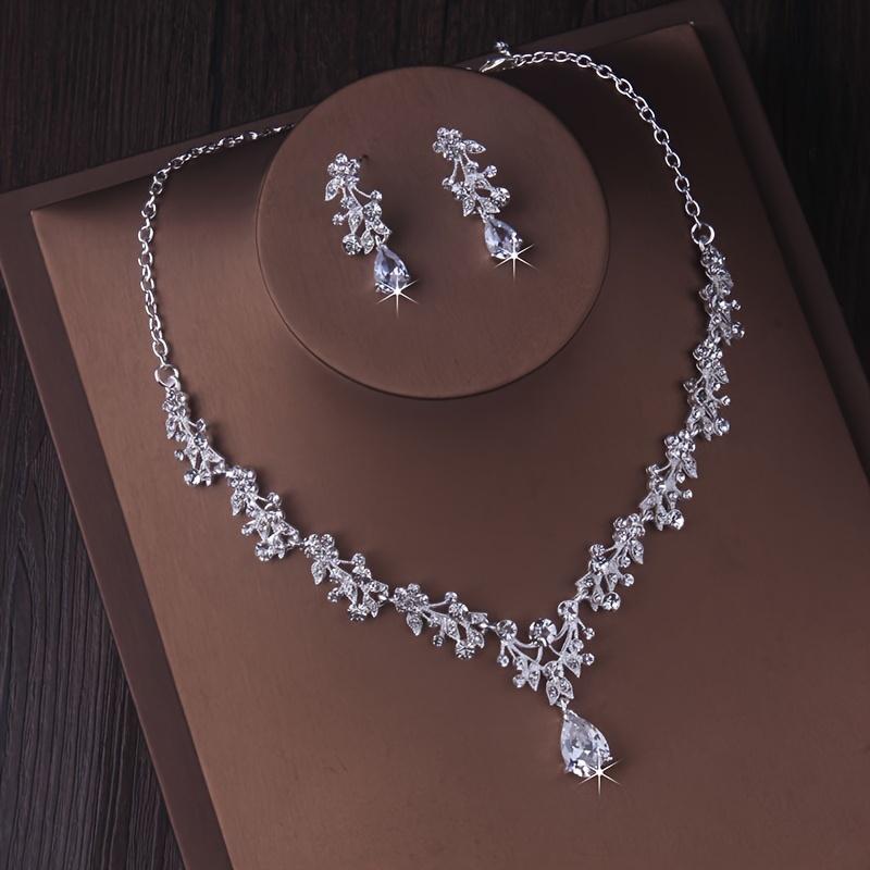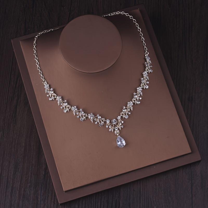 Комплект свадебных украшений для невесты с ожерельем и серьгами, цепочкой из синтетических цирконий и страз, комплект из ожерелья и серег для свадебного банкета