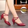 Женские туфли для латинских танцев из натуральной кожи, красная воловья кожа, мягкая подошва, средний/высокий каблук, стиль Square Dance.