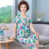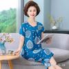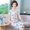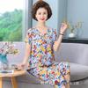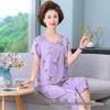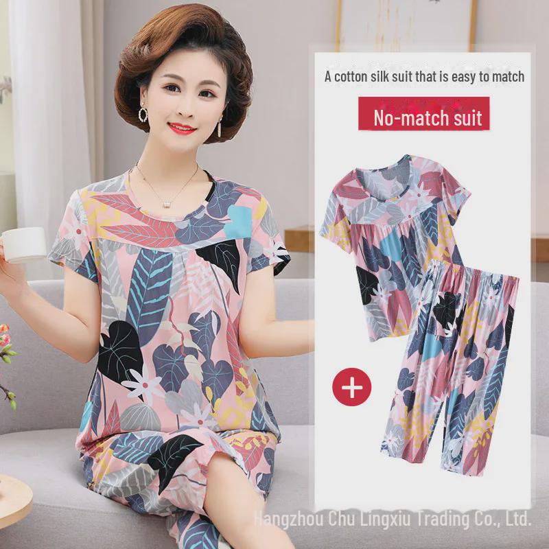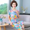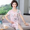 Женский летний пижамный комплект из хлопкового шелка - комплект из двух предметов с короткими рукавами для матерей среднего и пожилого возраста, подходит для ношения в помещении и на улице