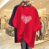 2023 Европейская женская розовая футболка с принтом «Любовь» свободного кроя на лето