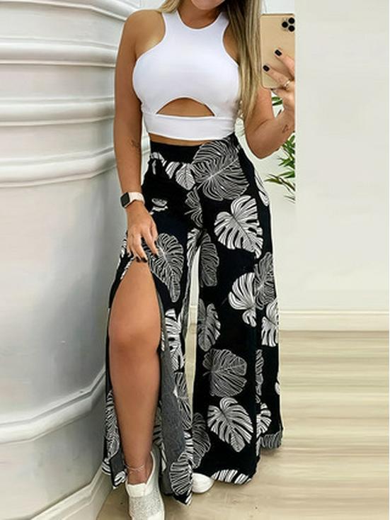 Европейские и американские женские брюки с высокой талией и широкими разрезами на весну, лето и осень - доступны все размеры — купить товар онлайн с бесплатной доставкой по всему миру!