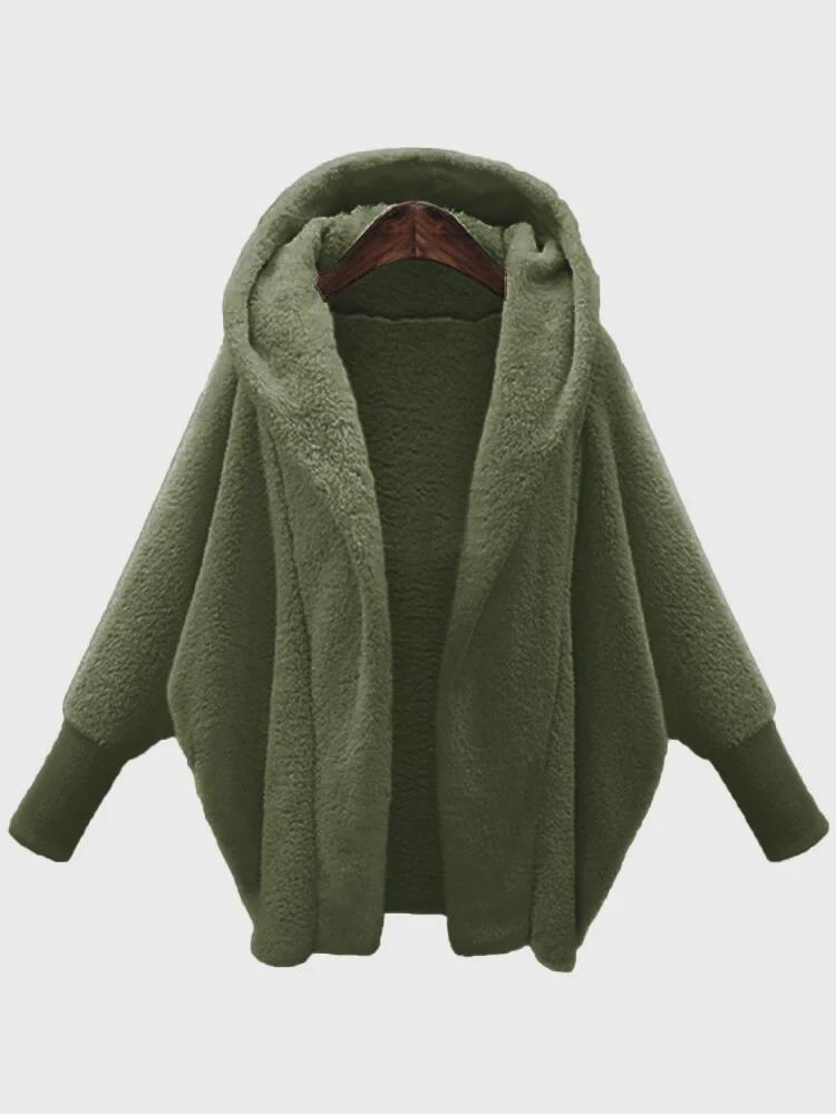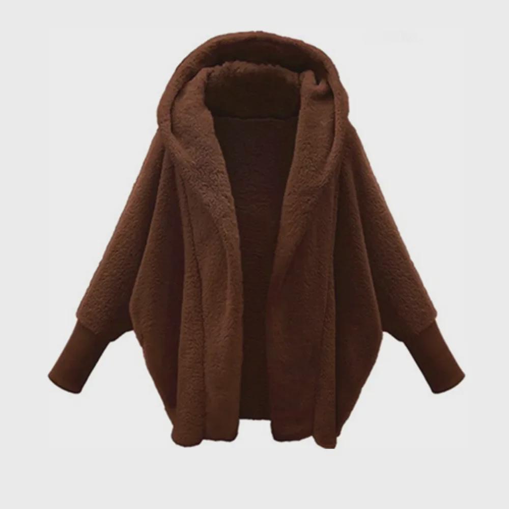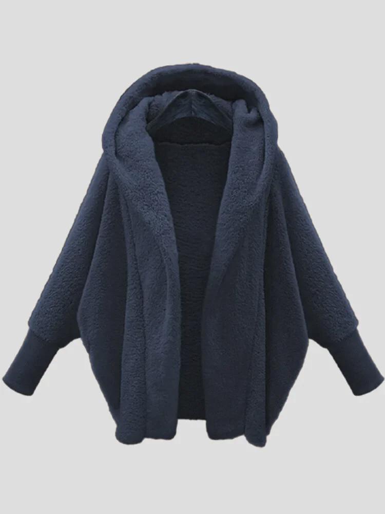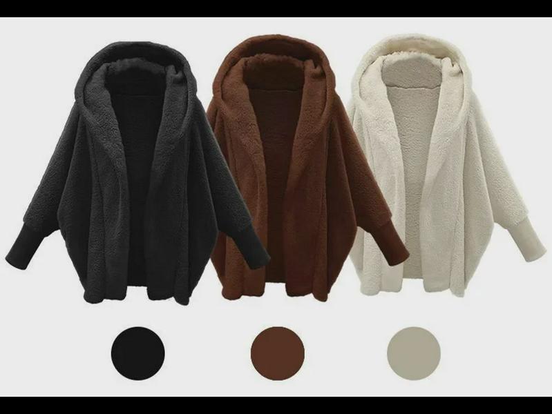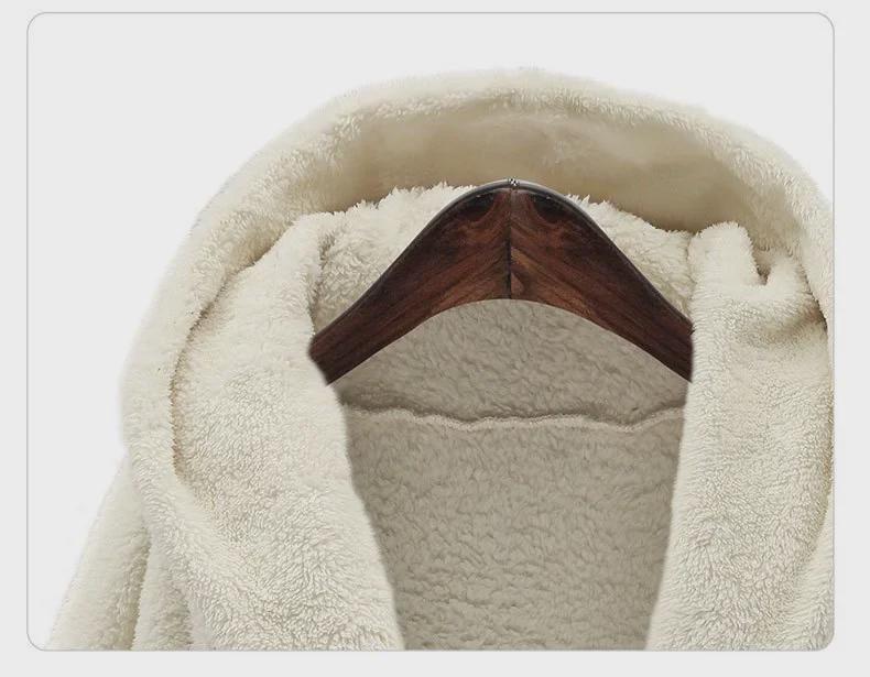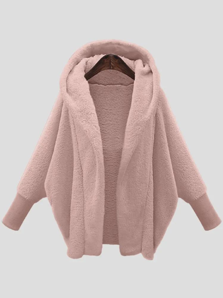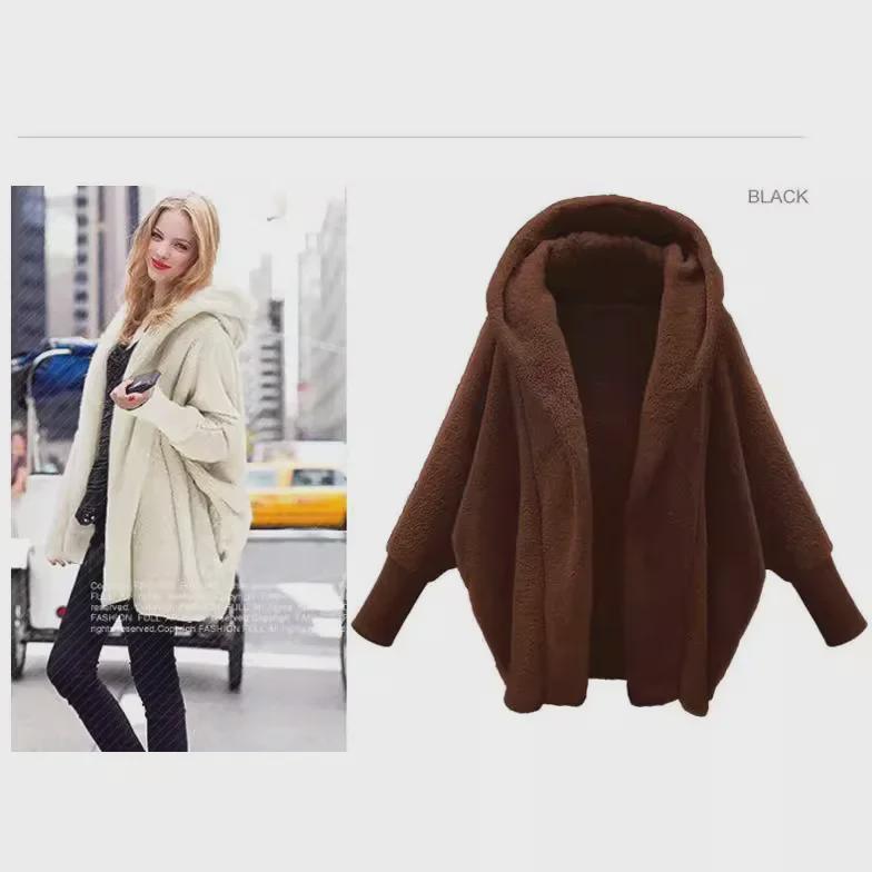Женское осенне-зимнее однотонное плюшевое пальто с длинными рукавами и капюшоном