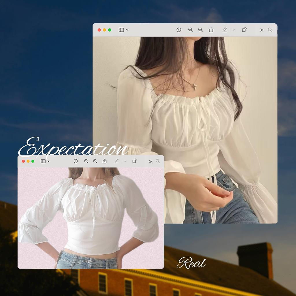 Шифоновая блузка в корейском стиле 2025 года: Деревянная завязка для ушей, квадратный воротник, рукава-трубы, короткий стиль — купить товар онлайн с бесплатной доставкой по всему миру!