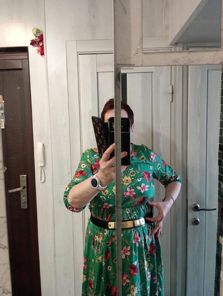 визуально платье интересное, красивая расцветка. ткань плотная, не совсем подходит для жаркого лета, сильно синтетическая. фасон так же лиф высоко под грудью, сборки под лифом создают эффект беременности при ношении платья. немного разочарована. передарю кому-нибудь его.