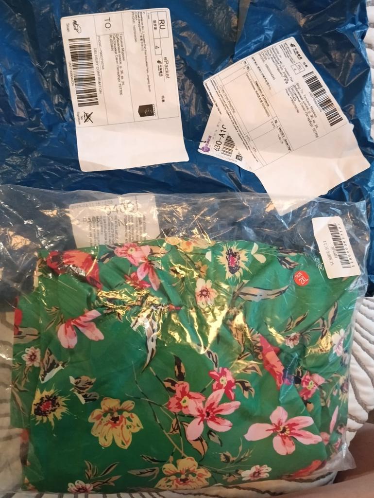 Платье шёлковое. На мой 52й размер маловато. Резинка под грудью оказалась. Смотрится не очень хорошо. Думаю, надо будет убрать резинку. На лето отличное платье, но размер выбирать с запасом.