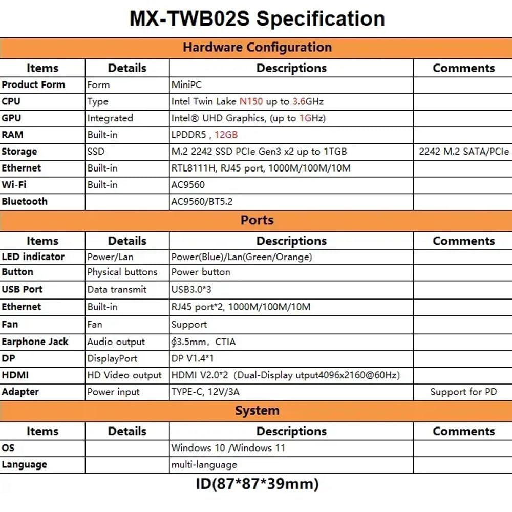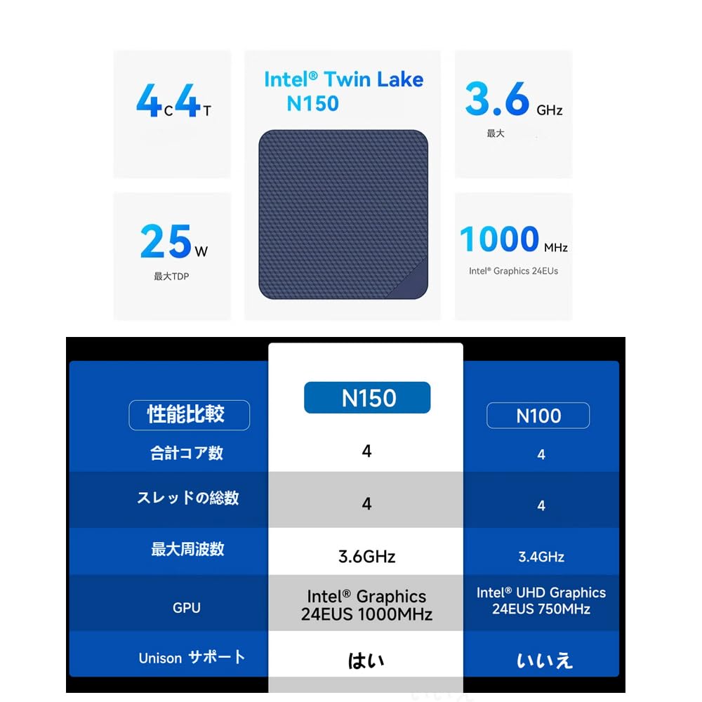 【Процессор Intel Alder Lake N150】Этот мини-ПК оснащен более быстрым вторым процессором Intel Alder Lake N150 с базовой частотой до 3,6 ГГц.. Также поставляется с BT5.2, 2*RJ45 LAN 1000M, применимым во многих сценах: офис, игры, аудиовизуальные технологии, инвестиции в акции и т. д.