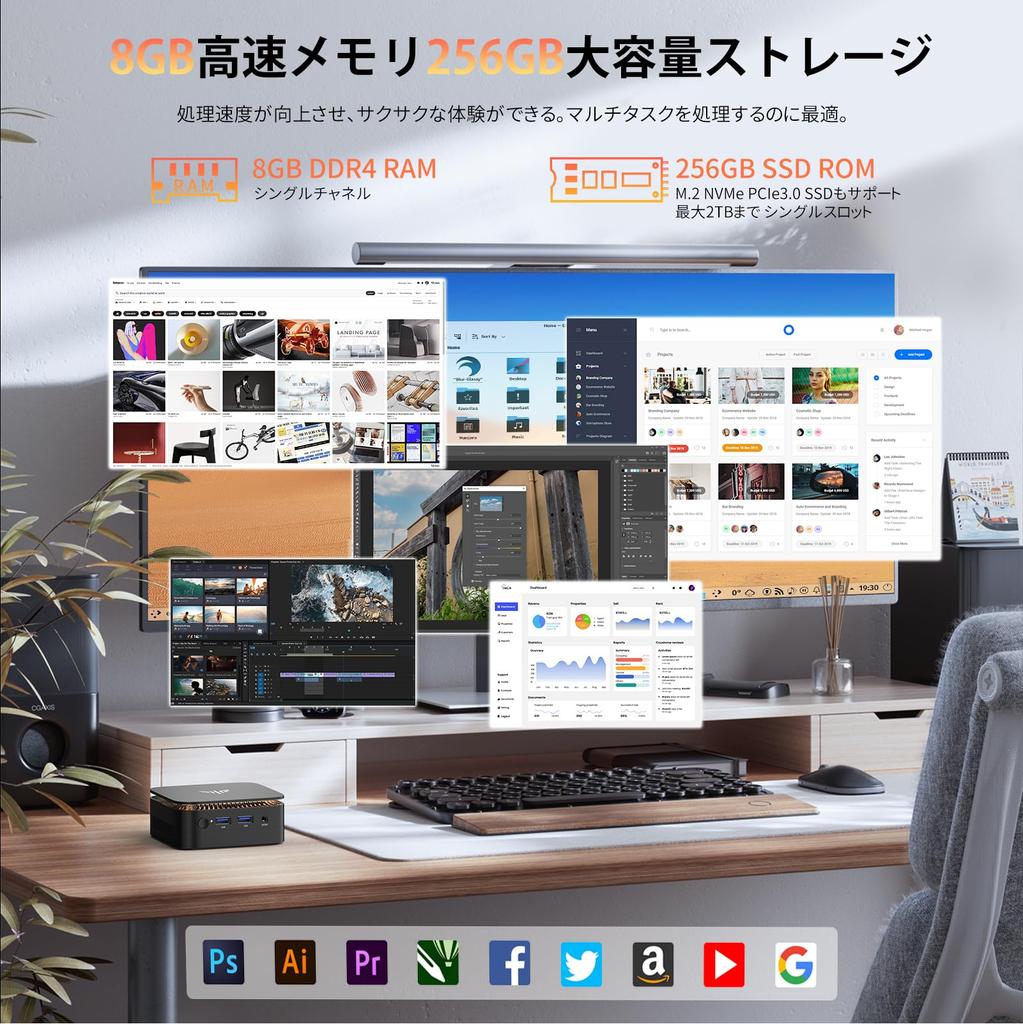 [Различные высокоскоростные интерфейсы, эволюция возможностей расширения профессионального уровня, революция многозадачности 4K]: Мини-ПК оснащен различными интерфейсами, такими как USB3.2 Gen2 (максимальная скорость передачи 10 Гбит/с)*2 / USB2.0 (Тип-A)*2/ HDMI 2.0*1 /DP1.4*1/Гигабитный LAN (RJ45) порт*1 / разъем для наушников 3,5 мм*1 и совместим с различными периферийными устройствами. Мини-ПК N150 использует новейшую усовершенствованную литографию Intel 7 и встроенный графический процессор UHD, что повышает стабильность работы компьютера, возможности анализа изображений и звука и т. д.. Небольшой ПК оснащен HDMI 2.0 x 1 + DisplayPort 1.4 x 1 и может отображать 4K при 60 Гц на двух экранах одновременно, что делает многооконную работу более эффективной для бизнеса, онлайн-образования, работы на дому, редактирования видео, биржевой торговли, удаленных совещаний и т. д., а благодаря разрешению 4K вы можете наслаждаться еще более красивыми изображениями.