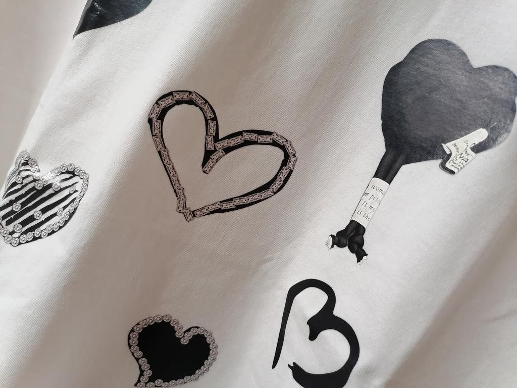 Неприятно, что футболка не соответствует фотографии - сама она неплохая, но на фото прекрасно видно, что на принте пришиты стразы и объёмное "сердечко" , а на самом деле просто рисунок "со стразами" . Зачем обманывать покупателей и выставлять фото, не соответствующие товару? Я её заказала, когда не было ни одного отзыва... Больше никогда не буду заказывать без отзывов. Это подделка, и стоимость ей максимум 300 рублей.