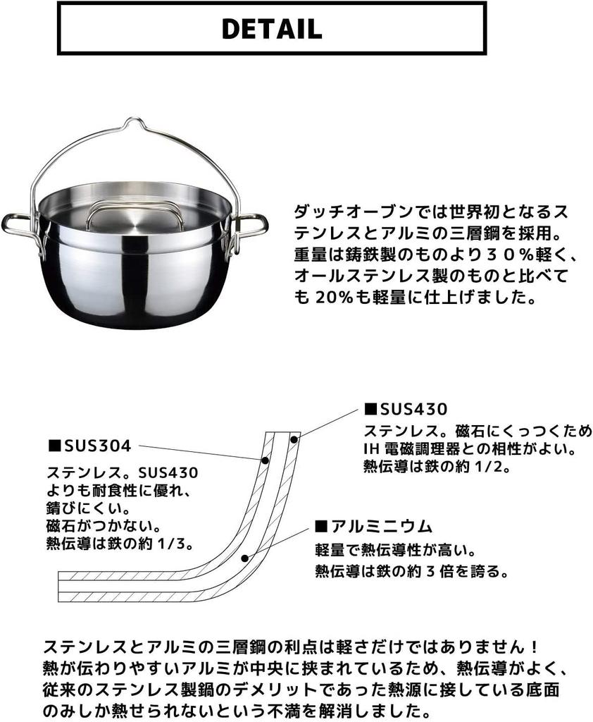 ① [Легкий вес] Вес на 30% легче, чем у изделий из чугуна, и на 20% легче, чем у изделий, полностью изготовленных из нержавеющей стали.. 2. [Высокая теплопроводность] Алюминий, который легко проводит тепло, расположен в центре, поэтому он обладает хорошей теплопроводностью и устраняет недостатки традиционных кастрюль из нержавеющей стали, такие как невозможность нагрева верхней части кастрюли.