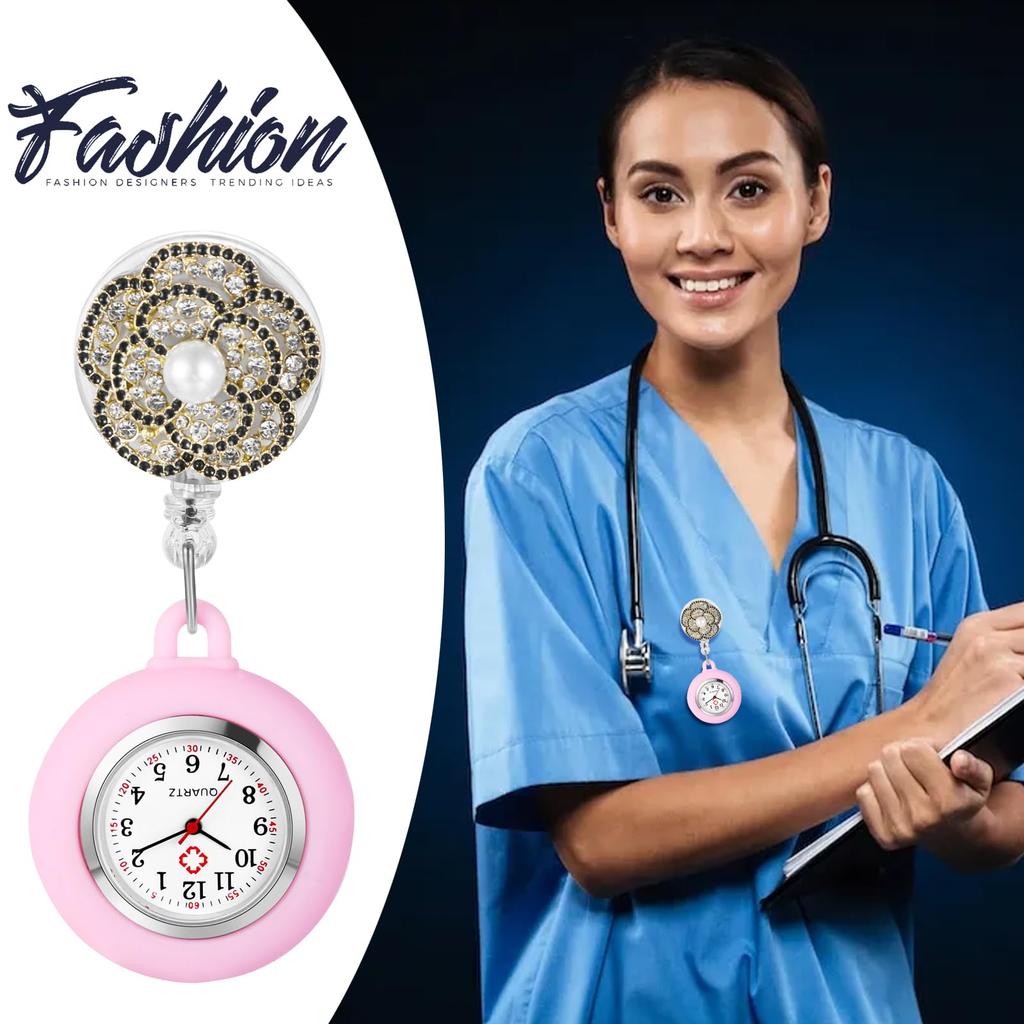 Часы для медсестры с силиконовым зажимом, аналоговые, милые, с цветком, перевернутые, водонепроницаемые карманные часы, карманные часы, кварцевые часы, товары для медсестер, идеальный подарок для
