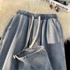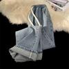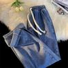 Прямые джинсы унисекс с эластичной резинкой на талии в стиле ретро — модный американский уличный стиль для весны и осени
