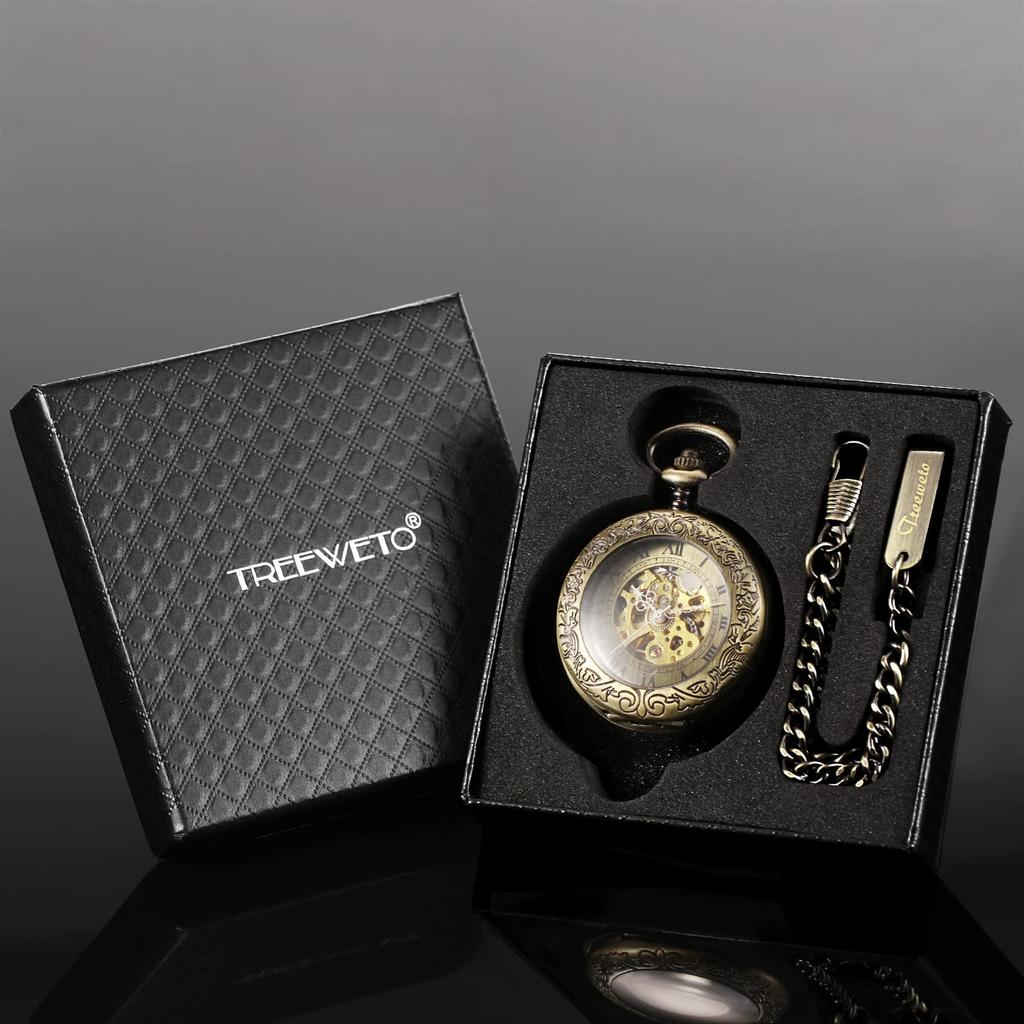 TREEWETO Автоматические механические карманные часы Half Hunter Case Стимпанк Скелетонизированный циферблат Мужчины Женщины Дамы